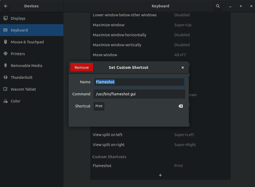 因为Linux自带的gnome-screenshot不好用,故我重装了第三方工具Flameshot