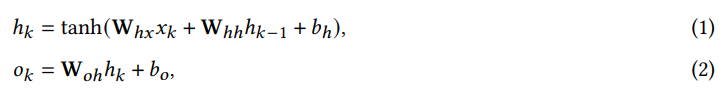是负责将模型输入处理成隐藏状态的权重矩阵; 是隐藏状态之间的递归连接权重矩阵; 表示用于从隐藏状态生成输出的权重矩阵; 和 分别对应隐藏层和输出层的偏置项; 表示引入非线性到 RNN 模型的双曲正切激活函数。